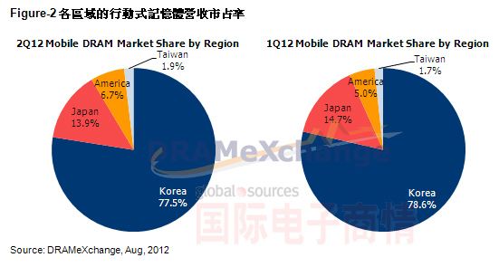 美光科技在移动式内存的产品线本来就较多元化且具弹性,尤其在低容量多芯片封装的产品更是广泛被应用于中低阶智能手机上。第二季受惠于整体中低阶智能手机需求成长迅速,营业额相较第一季成长50%,提升至1.3亿美元,市占率也由上一季的5%提升到本季的6.7%。同时,美光30nm的LPDDR2的产品已经于第二季发表,目前正处于客户验证阶段,后续在高容量产品上也可望提升营业额。